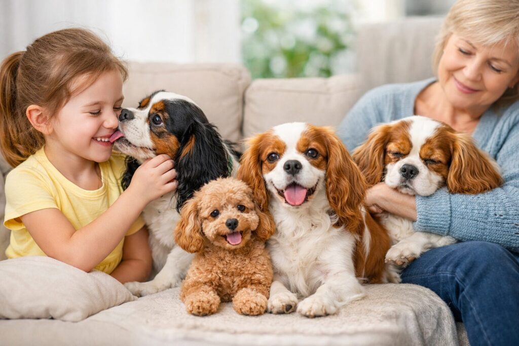 キャバリアは人懐っこく穏やかな性格で、子どもから大人まで幅広い年齢層と良い関係を築ける犬種です。