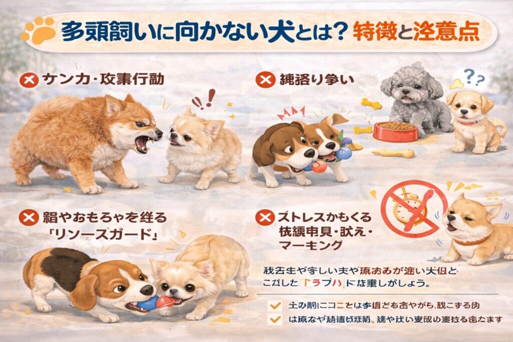 - 他犬に対して譲れない場面が多く、対立が生まれやすい