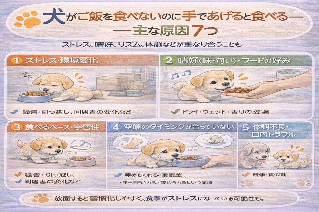犬がご飯を食べないのに手であげると食べる主な原因7つ