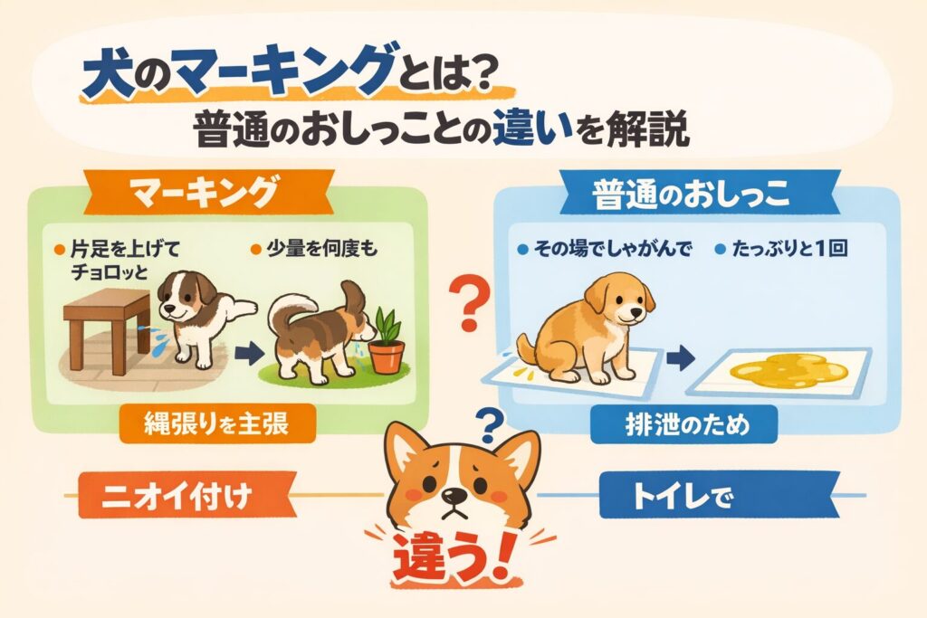 特に未去勢のオス犬はマーキング行動が強く出ることがあります。