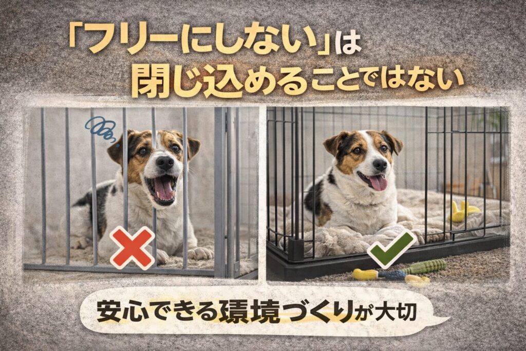 ケージが安心すぎると、フリー時に適応しにくくなることもあります。