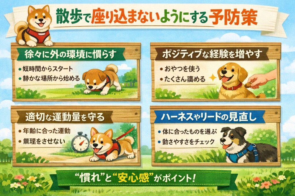 散歩で座り込まないようにする予防策