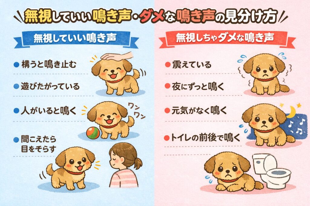 実は、子犬の鳴きは“無視すればいいもの”と“そうじゃないもの”があります。