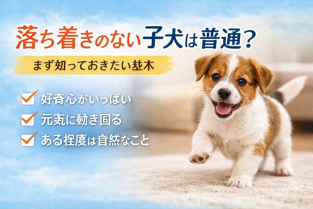 子犬の落ち着きのなさは、原因を理解すればしっかり改善できます。