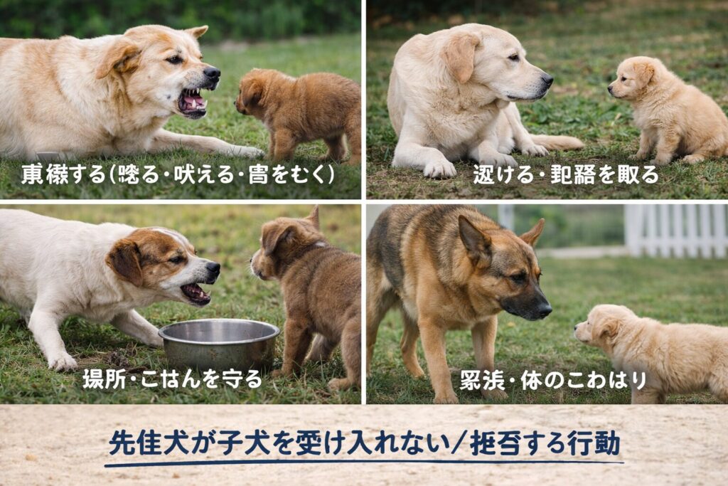 先住犬が子犬を受け入れない/拒否する行動