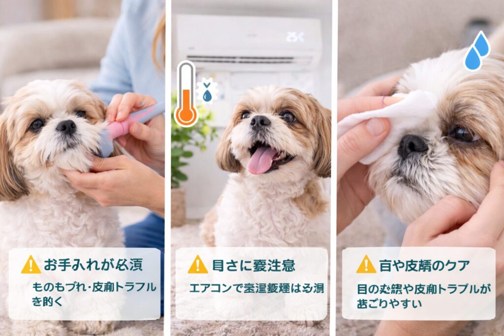 シーズーの特徴的な“ロングで密な被毛”は美しい一方で、メンテナンスが必要です。