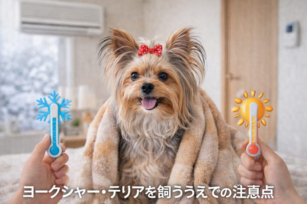 ヨーキーは小柄で被毛が薄く、体温調節が得意ではないため、暑さ寒さに敏感です。