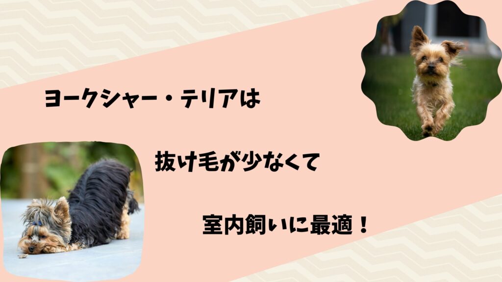 - 毛が落ちにくくて、掃除の負担が少ない犬がいい